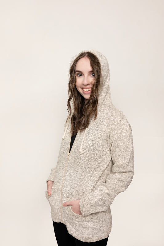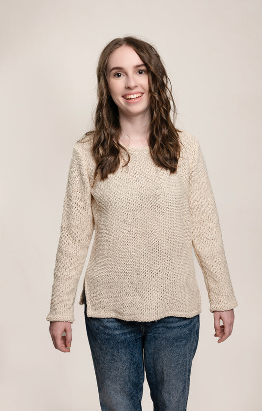 After some experimentation in different yarn types, we decided to specialize in natural fibres - mohair, wool and cotton. There was a definite interest and niche in the market for garments exclusively in these yarn types – but our cotton range proved to be the most popular and so that is where my focus has been. With the help of our yarn spinner at the time we developed a unique cotton yarn from scratch - the one is a natural cream colour and then later introduced another which has a flecked appearance to almost looks like a tweed fabric when knitted.